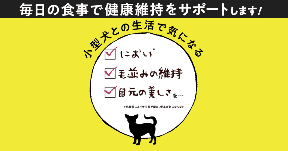 小型犬にありがちな悩みとして挙げられるのは体臭・毛並み・涙焼けですが、これらの問題が起こるのは栄養のバランスがとれていないためです。このこのごはんの原材料は高タンパク低脂肪の食材をブレンドし、栄養とバランスと味を追求し、愛犬の健康と食いつきの良さを重視しています。