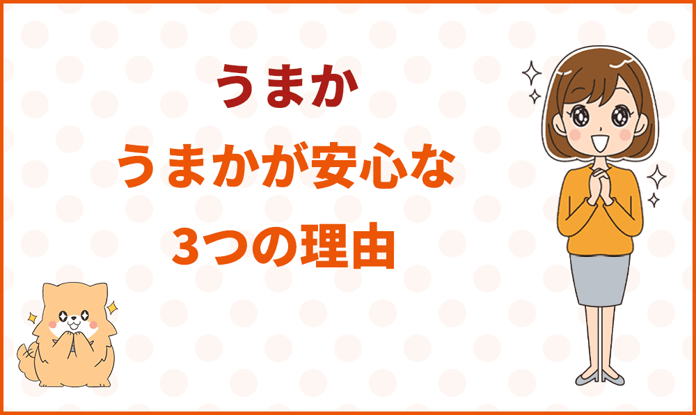 うまかは全年齢対応のオールステージドッグフードですが、安心して毎日与えられるポイントがたくさんあります。