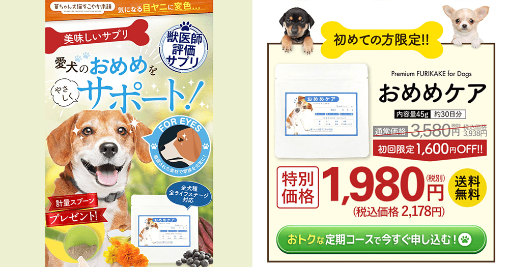 子供の頃に実家で飼っていた犬が、老犬になって目を患っていました。いま自分自身でも犬を飼うようになり、そのことが思い出されます。人も目のサプリはよく使いますので、華ちゃん犬猫すこやか本舗さんからモニターのお声がけをいただき、使っている「うまか」に振りかけて使っています。美味しいふりかけと思っているのか、最後はお皿を舐め回しています。